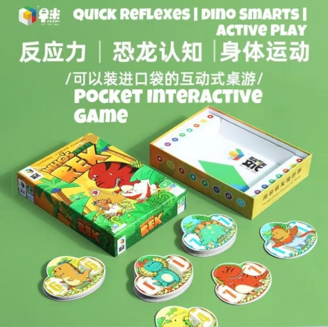 Two people need to make a quick judgment of escape or defense by comparing dinosaur species and value size at the moment the two dinosaur cards are opened. Exercise children's responsiveness and concentration.
